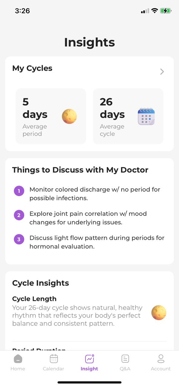 Receive personalized AI-driven insights into your menstrual health and cycle patterns to support more informed conversations with your doctor.